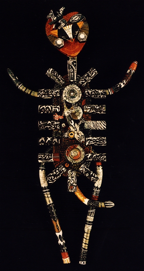 Medium: acrylic on/with objects, wood, rubber, plastic, metal and archival varnish.
