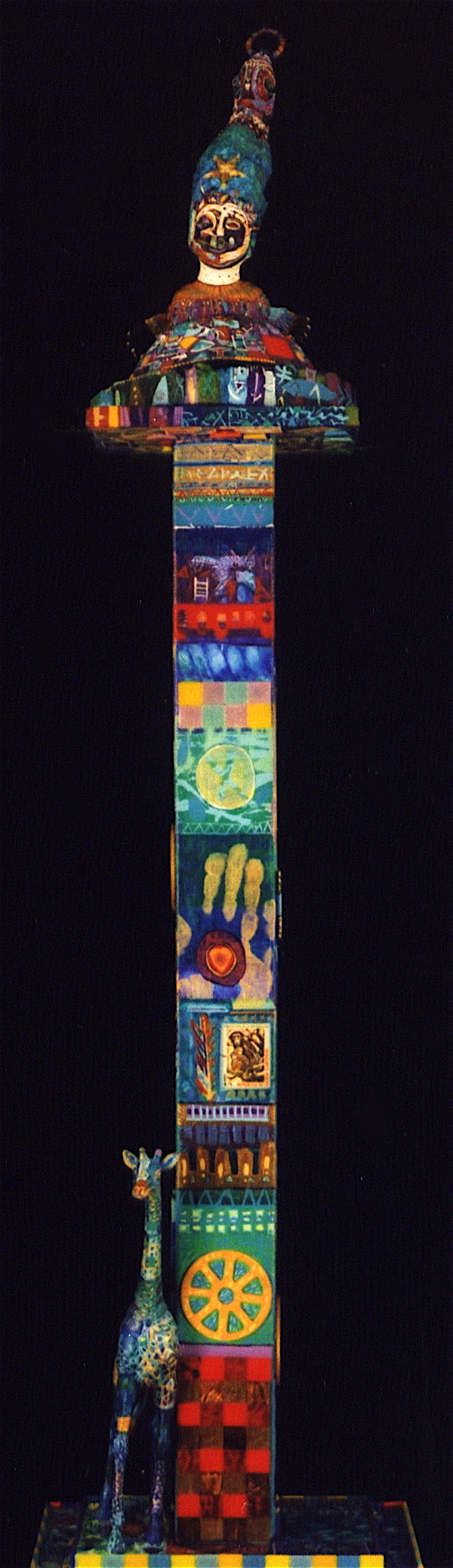 Medium: Acrylic (the bust of Nefertiti: Resin Plastic & other compounds) with objects: wood, rubber, plastic and metal (mosaics). Archival Varnish. A 3d Assemblage Sculpture.