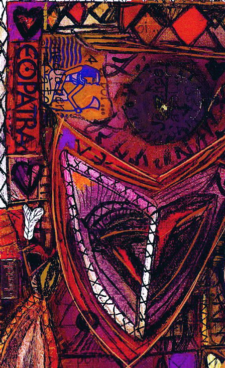 Medium: Acrylic, permanent ink, collage, on canvas with archival varnish