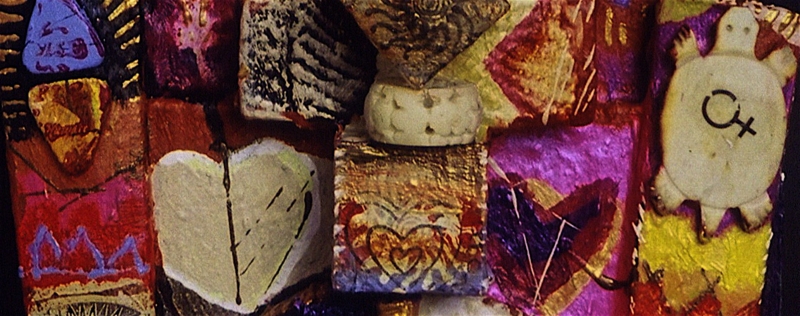 Medium: acrylic on/with objects, wood, rubber, plastic, metal and archival varnish. The head of Nefertiti is of resin plastic and other compounds. This sculptural painting (2-dimensional assemblage) can hang on a WALL, decorative support, graphic frame, or in a shadow box.