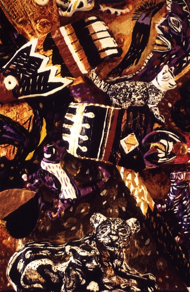 Medium: acrylic on/with objects, wood, rubber, plastic, metal and archival varnish.