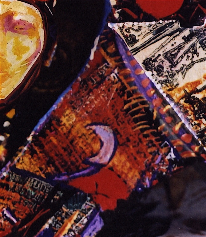 Medium: acrylic and permanent ink on wood with archival varnish. Collage elements (photographic transfer on canvas). Objects made of: wood, rubber, plastic and metal. The head of Nefertiti is of resin plastic and other compounds.