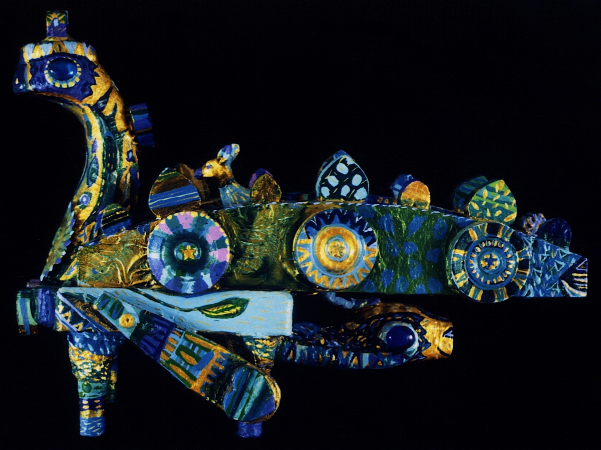 Medium: acrylic on/with objects, wood, rubber, plastic, metal and archival varnish.