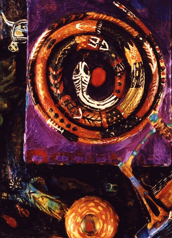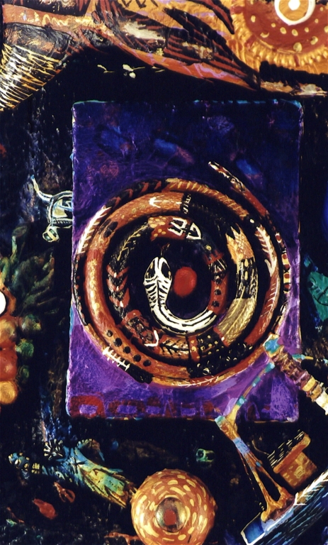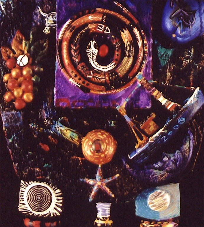 Medium: acrylic on/with objects, wood, rubber, plastic, metal and archival varnish.