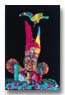 In the helmet of the carnival-clown portrait are escaped zoo animals, detail