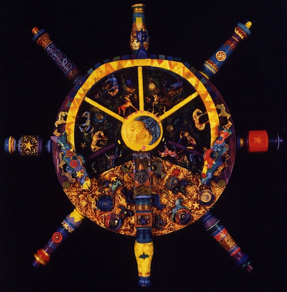 Medium: acrylic on/with objects, wood, rubber, plastic, metal and archival varnish.